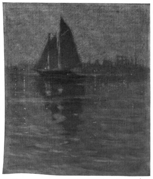 Little Barlow kissed his thanks on the lips of his loyal little wife and resumed: “I imagine sometimes that the old gentleman means well but doesn’t understand our case. He went into business as a boy, made all his money himself, and considers struggling was good for him and formed his character, so I suppose he honestly thinks that that is the very best training for an artist also. He doesn’t comprehend that we depend for our actual livelihood on the caprice of the public (and are often undeservedly worried thereby) or that we cannot paint directly for money, or that if we do so our work is tolerably certain not to sell. You can add up a column of figures, or measure calico, or weigh out sugar, or sweep a room, or do a lot of other useful things with the idea of remuneration for your pains in view, but you cannot write a great[17] poem, or compose a great piece of music, or paint a great picture—which must be poetic and musical as well—with an eye solely bent on the acquisition of the almighty dollar. I never in all my life painted but one of those horrid affairs that we so suggestively call ‘pot boilers’ and that—heaven help me!—has been knocking around my studio as a lesson ever since. There seems to be something in it that proclaims it a monster to the least intelligent, something mean about it which says money was the sole object of its being born at all.