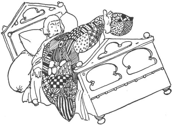 Three days passed. Early each morning the giant went forth from the hut and did not return until sunset. The princess cooked the food, made the beds, and kept the hut tidy and clean. At night 332she heard frightful noises in the outer room, the walls of the hut shook, and the earth trembled, and she lay in her bed hardly daring to stir, with the clothes pulled over her ears to deaden the terrible sounds. Whenever she fell asleep she dreamed that a handsome young prince, instead of the giant, was her fellow-dweller in the hut.