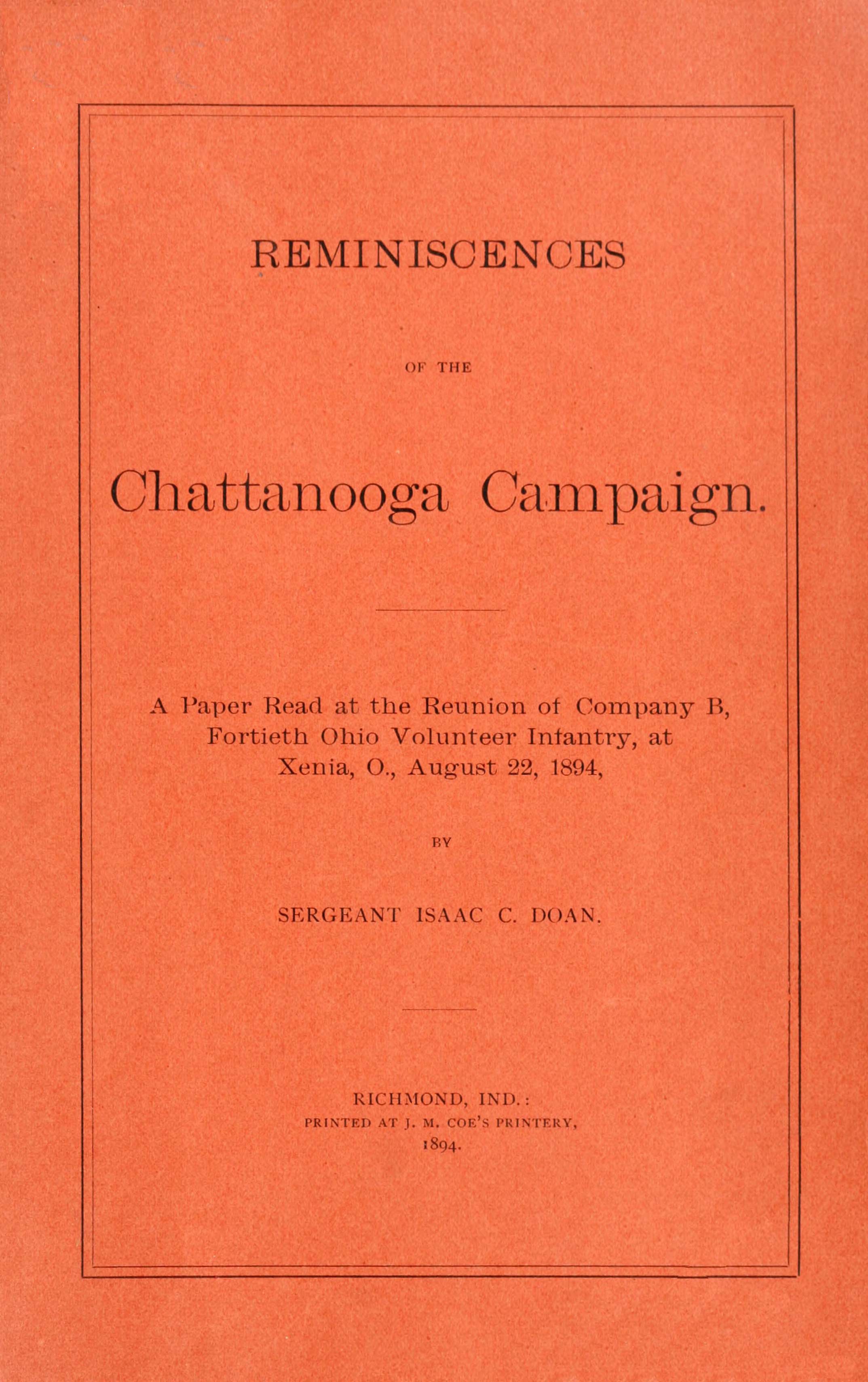 Title: Reminiscences of the Chattanooga campaign