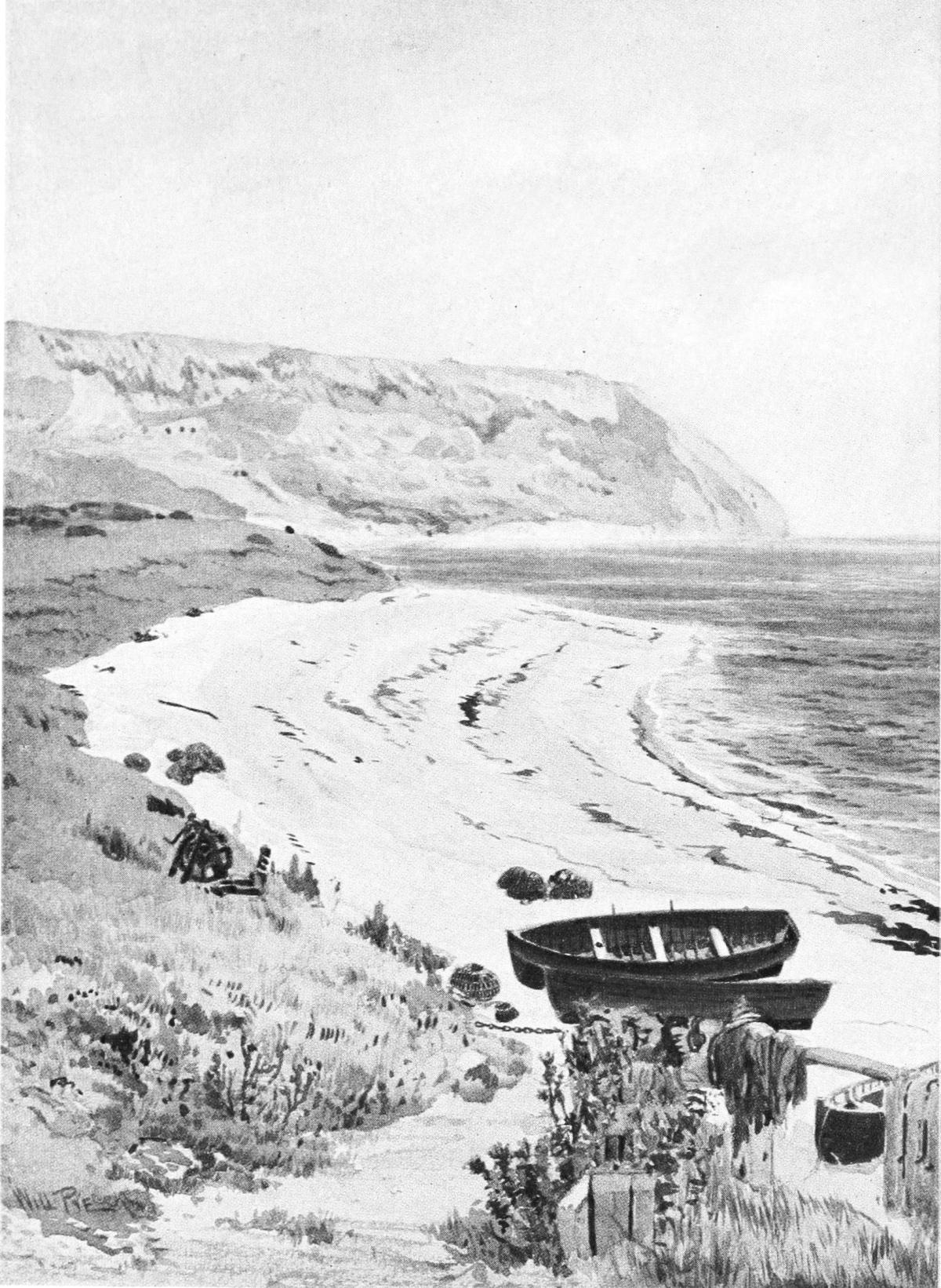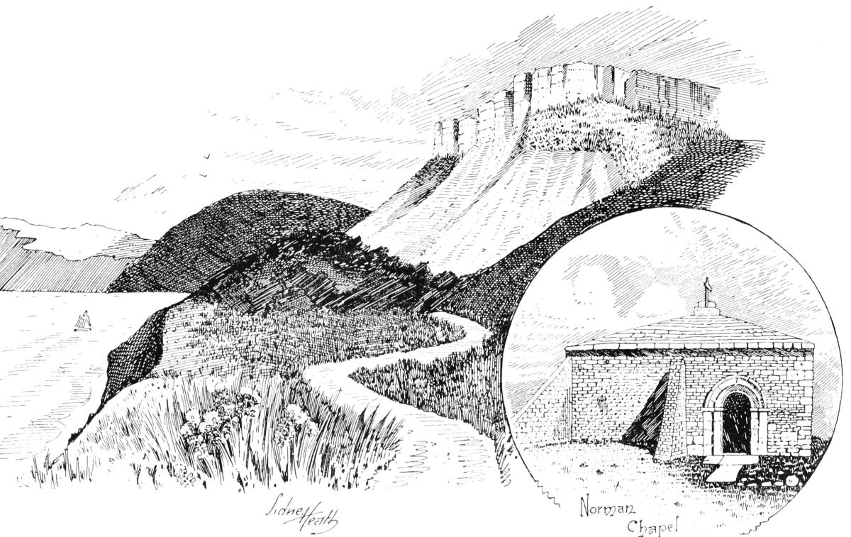 “Where one may walk along the undulating downs that skirt the Channel, held in place by parapets of cliff that break down straight into the sea; where one may walk mile after mile on natural lawn and not meet a soul—just one’s self, the birds, the glorious scenery, and God.” (See page 109.)