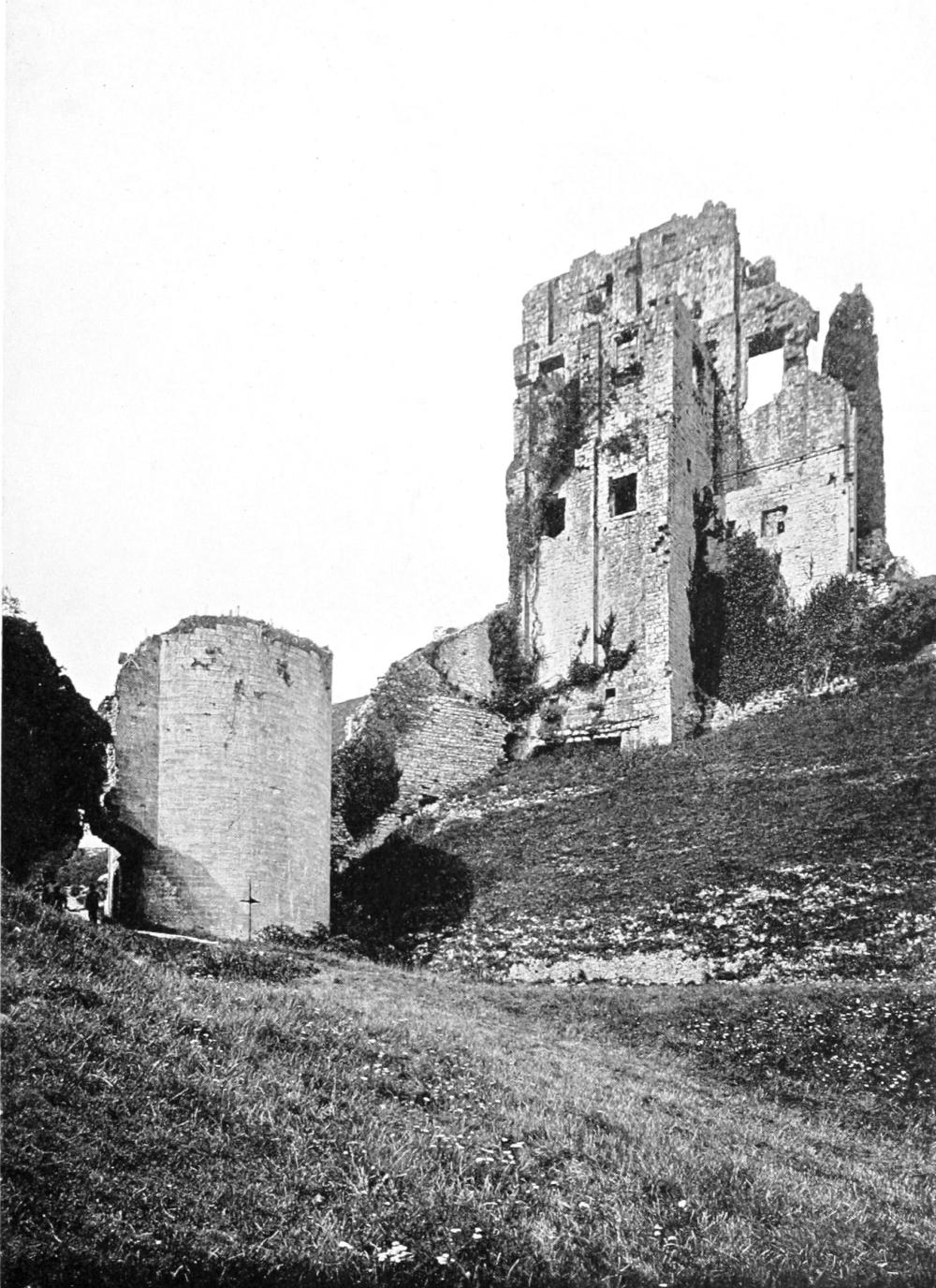 Sir Walter Ralegh, a Devonshire man, was connected with Sherborne, for it was here that he and his wife, Elizabeth Throgmorton, settled, and in January, 1591-2, had obtained a ninety-nine years’ lease of the castle and park. Here he busied himself with building and “repairing the castle, erecting a magnificent mansion close at hand, and laying out the grounds with the greatest refinement and taste.” The castle now occupied by the Digby family is in part the lodge built by Sir Walter, and over the central doorway appear his arms, and the date, 1594. Before his conviction he settled his estate on his son, but by a flaw in the deed James I. took it from him, and granted it to his favourite, Carr, Earl of Somerset. It is said that Lady Ralegh asked the King on her knees to spare her son’s heritage, but that the King’s only answer was, “I maun hae the lond; I maun hae it for Carr.” On Sir Walter’s journey to the Tower, he passed in full view of Sherborne, and said, motioning with his hands towards the woodlands and the castle, “All this was once mine, but has passed away.”