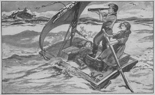 It was really a heavily built raft, more than twenty feet in length, and with a short, stumpy mast lashed upright amidships. Near each end was a long sea chest, both placed across the raft, and there were also a broken water butt and several empty cracker boxes lashed firmly (as were the chests) to the strongly built platform.