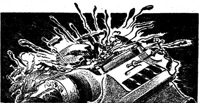 "We're still cleaning relay contacts with files. Take another hour at least, and we've got so much help that the boys on the upper panels are standing on the shoulders of the men working on the lower panels. Also, they're so close together that they need a hortator to beat time so their elbows won't clash. That's how we stand on 9."