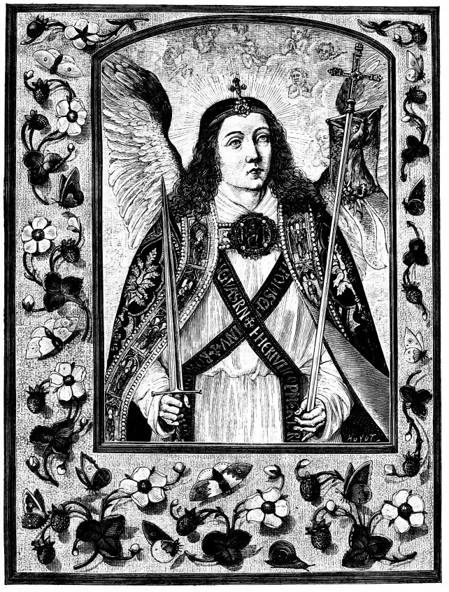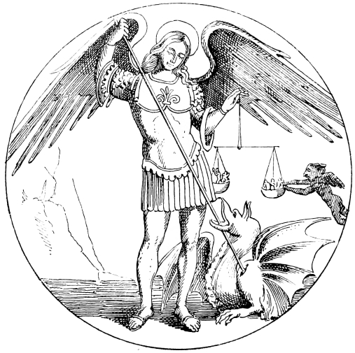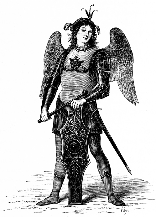 Après avoir esquissé ce tableau magnifique de la constitution des anges, il nous reste à chercher, parmi ces millions d’esprits lumineux, la place de saint Michel. Sur cette question d’un si vif intérêt pour notre piété, les docteurs sont partagés d’opinion. Faut-il classer saint Michel dans le second ordre de la dernière hiérarchie, parmi les Archanges, glorieux messagers que Dieu députe vers les hommes dans les circonstances graves et solennelles? Doit-on le ranger au nombre des Principautés qui ont pour mission la garde des cités et des peuples? Ou bien, enfin, nous élevant à ces hauteurs prodigieuses, où le génie des Pères est monté, devons-nous chercher saint Michel au premier rang parmi les Séraphins, à la tête même de tous les esprits bienheureux et vénérer en lui le prince des célestes hiérarchies? L’Écriture sainte, les saints Pères, de graves théologiens nous autorisent à croire que c’est bien sur ces hauteurs qu’il faut admirer le vainqueur de Lucifer.{23}
