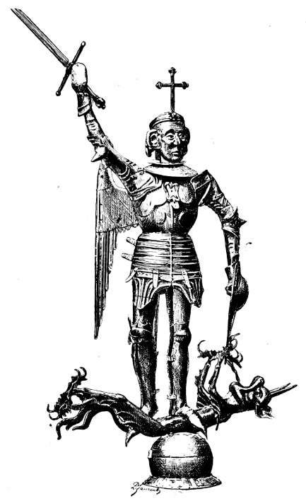 Combien parmi nous d’esprits faibles qui croient faire preuve de force en souriant au seul nom de ces fantômes qu’on nomme les démons? «Le chef-d’œuvre de ces mauvais génies, dit le P. de Ravignan, c’est de s’être fait nier par ce siècle.» La réforme de Luther avait préparé ce chef-d’œuvre en exagérant le rôle du démon. La philosophie sceptique et athée qui a succédé à la réforme, le matérialisme qui a été comme l’inévitable conséquence de la mollesse et de la sensualité, ont porté un coup mortel à la foi en l’autre vie. Quelle différence, à ce point de vue, entre les robustes croyants du moyen âge, courbés sous le poids d’un labeur incessant, mais relevés par une espérance d’immortalité, et ces efféminés de notre siècle ne rêvant que bien-être, ne croyant qu’au présent, perdant de vue la conquête de Rome dans les délices de Capoue! En vérité, que pouvait avoir de commun avec des hommes de cette trempe l’Archange conducteur et peseur des âmes? Ajoutez à cet état universel des esprits l’oubli des{6} traditions du passé, les sentiments chevaleresques généralement évanouis, l’amour de la patrie trop souvent affaibli, pour ne pas dire éteint, le prodigieux travail de décomposition opéré dans nos sociétés modernes, et vous comprendrez que non seulement la popularité du nom de saint Michel, mais son culte, mais son existence même ne pouvaient trouver grâce devant une telle époque. Vous comprendrez que la foi au grand Archange devait sinon succomber, du moins s’affaiblir sous tant de causes de ruine.