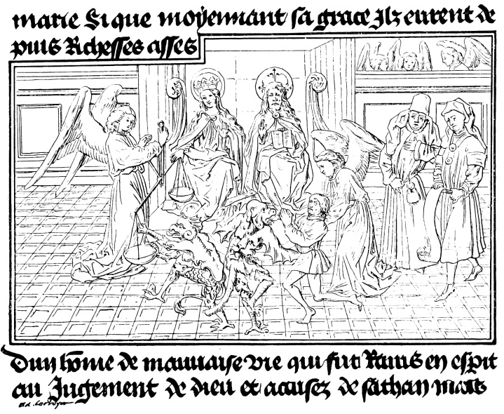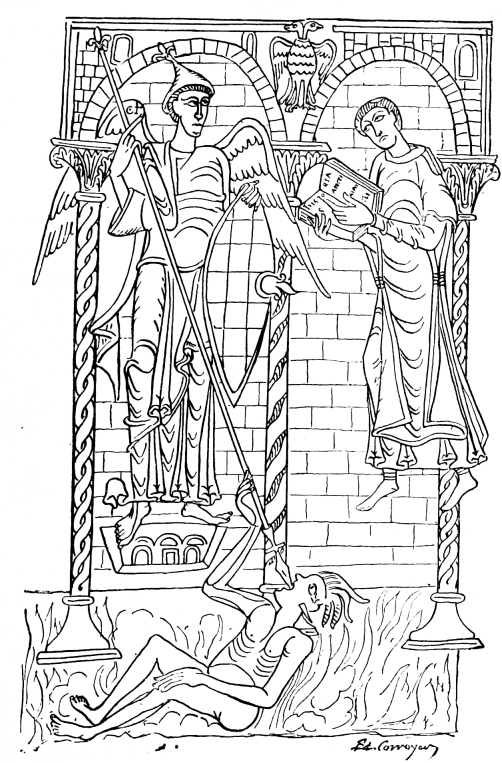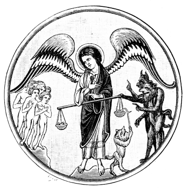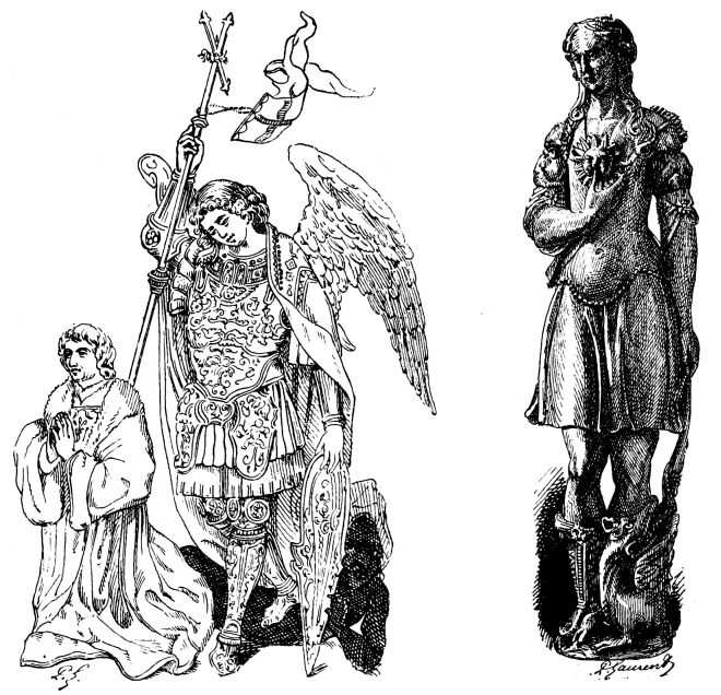 [42] Nous donnons à dessein le texte complet de ce Mystère pour bien faire saisir à nos lecteurs le rôle de saint Michel dans le drame du moyen âge. Tout épisodique qu’il soit, ce rôle est important et peut passer pour nécessaire. Le texte des manuscrits français de la Bibliothèque nationale, 819 et 820, a été collationné sur l’excellente édition de MM. G. Paris et U. Robert.