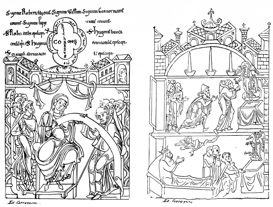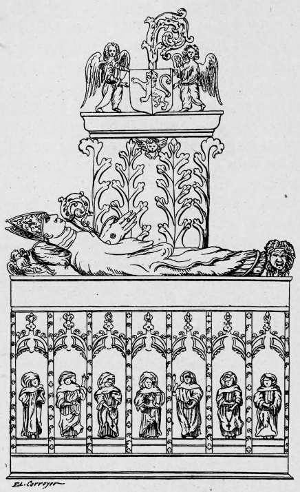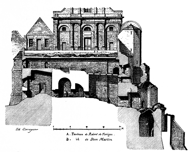 [13] «Eodem anno (1264) die 29 Julii obiit Richardus Tustin, vigesimus primus abbas Montis. Hic fecit bellam cavam, incipit etiam novum capitulum et novum opus subtus bellam cavam...» Dom Jean Huynes (Histoire générale, etc., ms. 18947. Bibl. nat.).