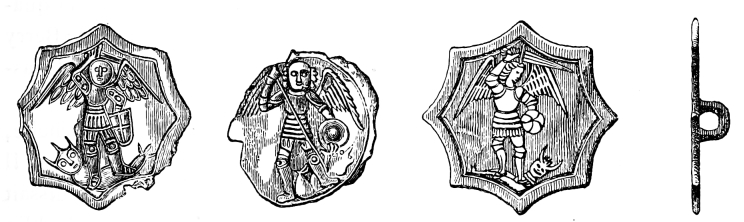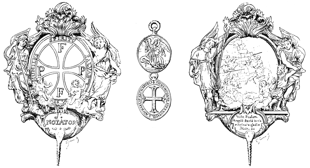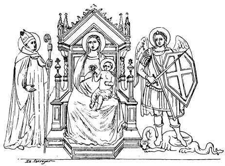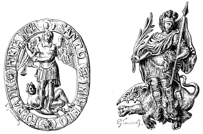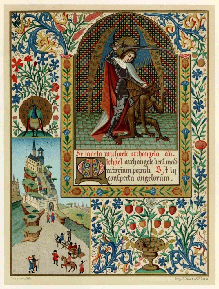 [39] Publiée dans les Hymni medii ævi, de Mone, I, p. 446. On trouve dans ce même Recueil sept autres pièces liturgiques sur saint Michel: Archangelum mirum magnum (p. 447); Unitas in trinitate (p. 450); Lumen æterno radians nitore (p. 451); Summi regis archangele (p. 452); Magnum te, Michaelem (p. 454); Ad celebres rex cœlice (p. 454); Michael dux Angelorum (p. 456). Nous devons ajouter que l’attribution à saint Ambroise du Mysteriorum signifer est bien loin d’être démontrée.
