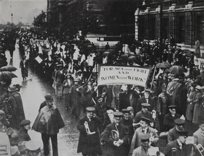 When she led 40,000 English women through the streets of London in July, 1915. This procession is the vanguard in the march of all the women of the world to economic independence.