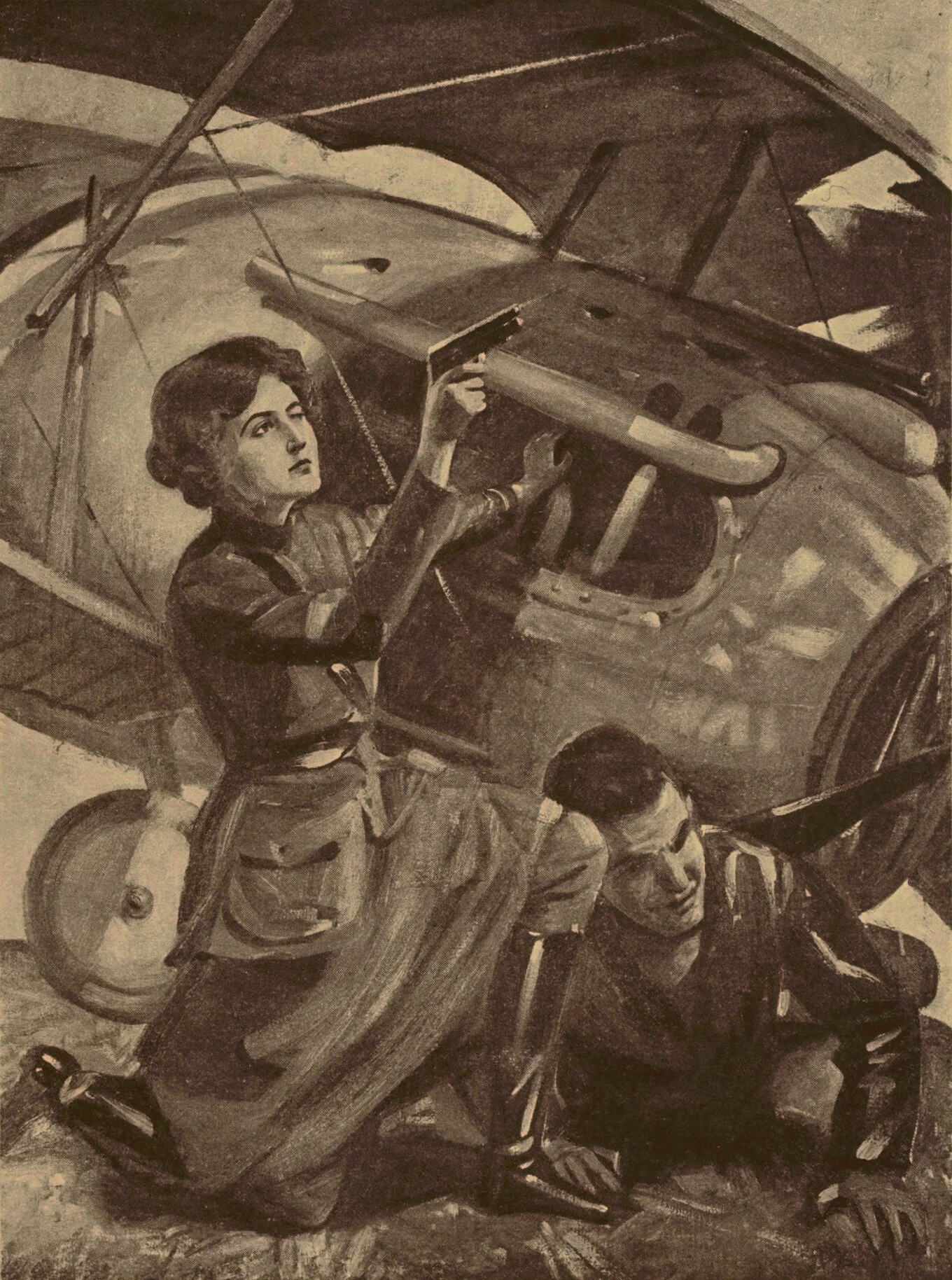 Ruth crouched beside Gerry, and shot through the wreckage at the circling German plane