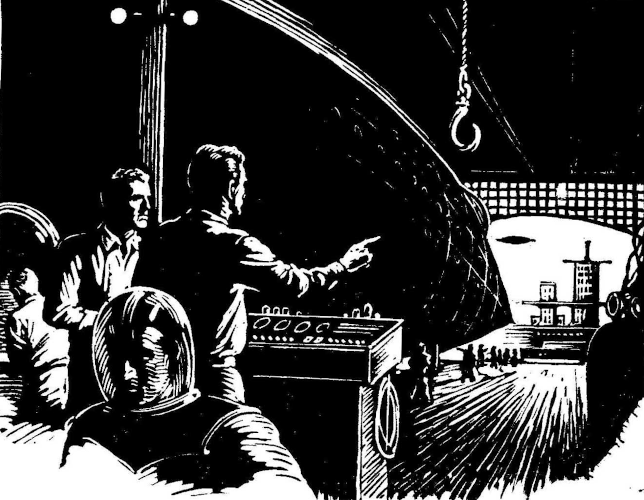 It was difficult for Barden, for the alien was sure-footed in his climb up the jagged edges to one section near the middle of the pile. He disappeared inside and found a piece of equipment, which he brought out. He set this upon the floor and returned with other equipment which he added to the original piece. Then taking the whole bunch in his arms, he led them up to the operations room.