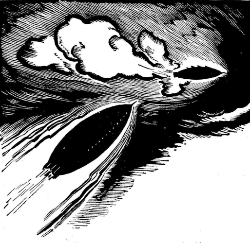 It was here that they met the alien ship. It came from nowhere and passed them slantwise at a terrific velocity. As it passed, a stabbing beam darted once, and the beam-end burst into a coruscation of sheer energy.