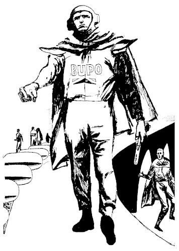 "State business!" the Bupo snapped. "Keep your mouth shut!" Too late, he recognized the Surgeon-General's uniform, and became silent.