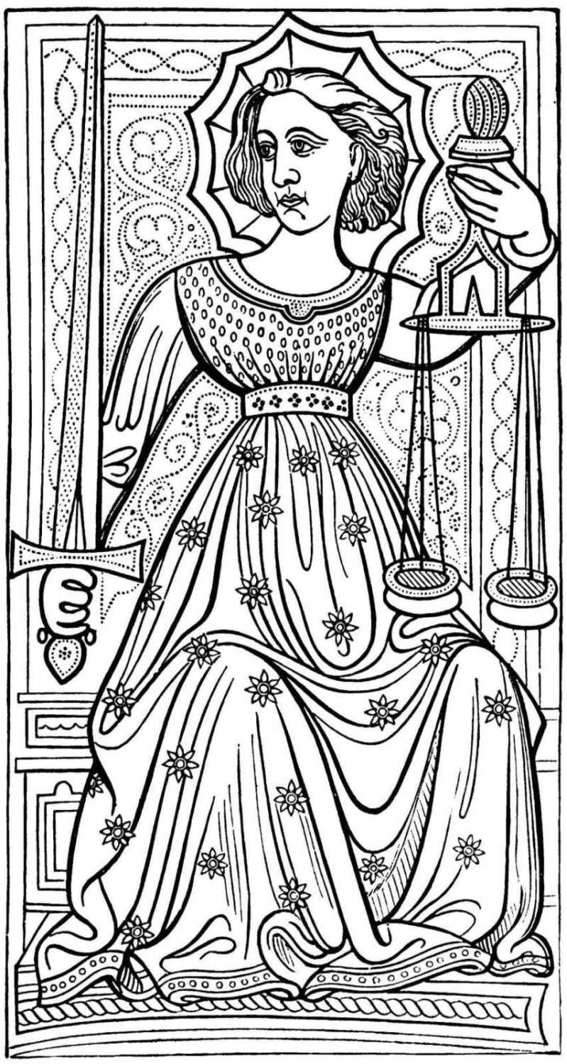 The earliest known specimens of these Tarot cards are now to be found in the Cabinet des Estampes in Paris, and are supposed to have formed part of the pack which was painted for King Charles the Seventh of France in 1393, to cheer and amuse him during an illness which had been caused by a coup-de-soleil in 1392, and which made him a melancholy but not a dangerous lunatic. M. Paul la Croix describes these Tarots as having been most delicately painted and resembling in treatment the illuminations of manuscripts. They are on a golden background on which dots forming an ornamental pattern were impressed. A border of silver surrounded and as it were framed each picture, through which a dotted line twisted spirally like a ribbon. M. la Croix points out that this dotted line, in his language technically termed a tare (which also[Pg 16] means a “fault” or “defect”), was a sort of fluting produced by small holes pricked into the substance of which the cards were made, and fancies that to these Tares the Tarots owe their name. Other writers, however, dispute this derivation of the word, and discover new ones for themselves which are generally quite as fanciful and far-fetched.