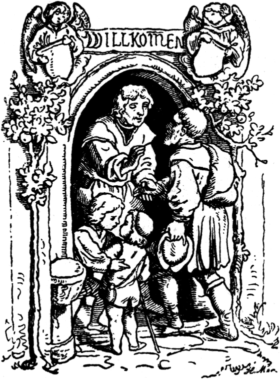 Wenn die Erinnerung den Weg in meine Jugend zurückgeht, kehrt sie in einer alten Mühle ein, in der ich meine schönsten Kindertage verlebt habe. Durch den Torbogen sieht man die Säcke aufgetürmt im kühlen Hausflur liegen, das Wasser stürzt und feiner Staub erfüllt die Luft. Dort geschah es manchmal, wenn wir Kinder hoch oben auf den Säcken spielten, daß ein Handwerksbursche in den Torbogen trat und unbekümmert ins Haus hineinrief: „Grüß Gott, wandernder Müller.“ Wenn dann der Müller, oder seine Frau, herbeikamen und ihm als Zunftgenossen den üblichen Reisenickel gegeben hatten, erzählte er noch einiges vom Woher und Wohin, und daß er sich nun das Saaltal aufwärts übern Wald nach Franken durchschlagen wolle, bis zu den Alpen. — Das ist lange her, aber damals erwachte die Wanderlust und Wandersehnsucht in mir, und wenn die ersten blauen Frühlingstage kommen, geht die[S. 6] Erinnerung noch heute freudig und sehnsüchtig zurück zu der Mühle in der kleinen Stadt und zu dem wandernden Müller, der über’n Wald nach Franken wollte, bis zu den Alpen. Die Welt, in der die Mühle stand, war die Welt Ludwig Richters; die Mühle mit ihren winkligen Neben-Häusern und Höfen, wo man dem Nachbar in den Kochtopf sehen konnte und wo sich ein behagliches Reich von Hinterhäusern auftat, mit Höfen und Höfchen, mit eifrigen Tauben und bunt blühenden Fenstergärtchen, mit Scheunen, wo man das Dreschen hörte, und Hausgärten, die bis zum Stadtgraben gingen; dort drängten im ersten Frühjahr die Schneeglöckchen aus dem Rasen und im Herbst warfen die alten, schönen deutschen Rosenbüsche ihre Blätter auf die Wege. Und waren die Einfassungen aus Buxbaum auch etwas schadhaft und die Gartenlaube windschief, so erging sich doch Groß und Klein in dem Garten, die Frauen schwatzten an den Nachbarzäunen und nirgends in der Welt war es behaglicher. — So war die ganze Stadt: am Samstag kamen die Marktweiber in strengen schwarzen Kopftüchern von ihren Dörfern mit Tragkörben und Butterkübeln aus weißgescheuertem Tannenholz auf dem Rücken zum Markt, wo wir Kinder uns in der Sonne zwischen den Körben und Obstständen herumtrieben und die Leute vor den Fleischerbuden standen und rötlichen Landwein zu ihren Bratwürsten tranken; da war gut sein: warme Sonne, leichter blauer Rauch von den Bratrosten, Musik vom Rathausturm, dazu fröhlicher Kleinstadtlärm und dazwischen bummelnde Studenten, die sich für eine Spritzfahrt auf die Bierdörfer talauf, talab verabredeten.