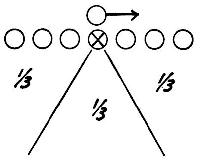 Eight or 10 secondary men will line up behind each other.[216] One player at a time will run toward the coach who will throw the football directly at the player, or to either side of him. The defensive man should intercept the pass, as illustrated in Figure 121.