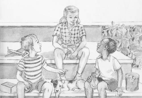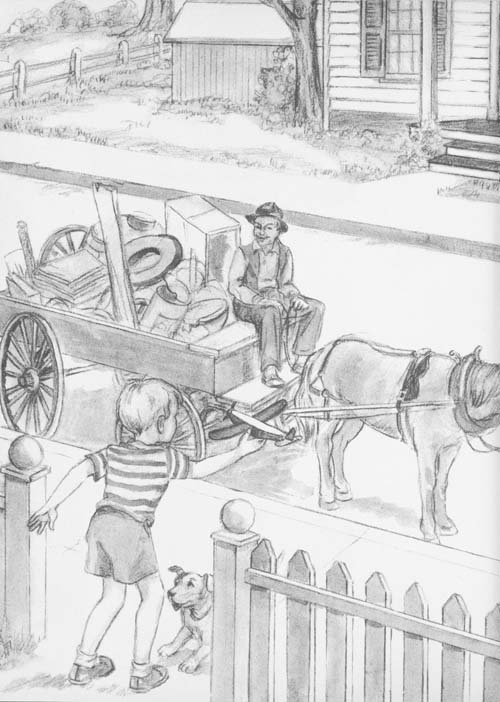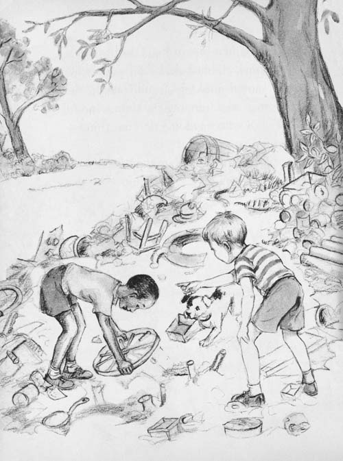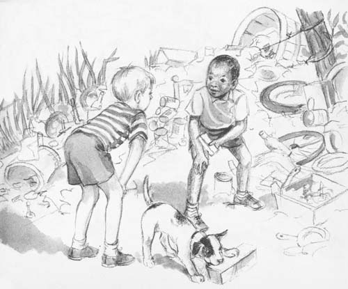Nappy climbed down off the wagon and started looking around while the trashman was dumping the trash. And he saw a boy who was doing the same thing—looking around.
