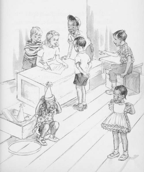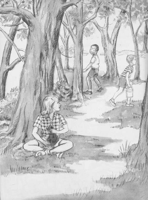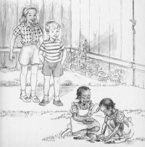 “You wait here,” said Tommy. “I’ll get my big brother. They’ll drop those mud pies and dance as soon as they hear the music.”