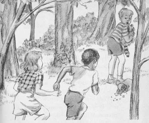 “I put down my pail,” said Nappy, “to pick some more berries, and when I looked around, this little fellow was in the pail with his tail sticking out ... so I grabbed him. I’m going to keep him for a pet.”