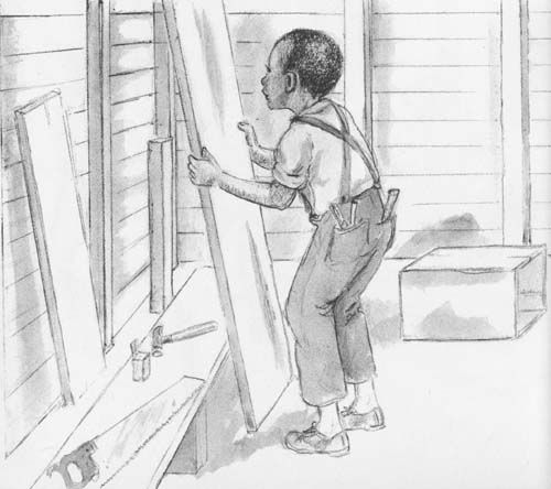 When the trash wagon came to Nappy’s house the boys got off.