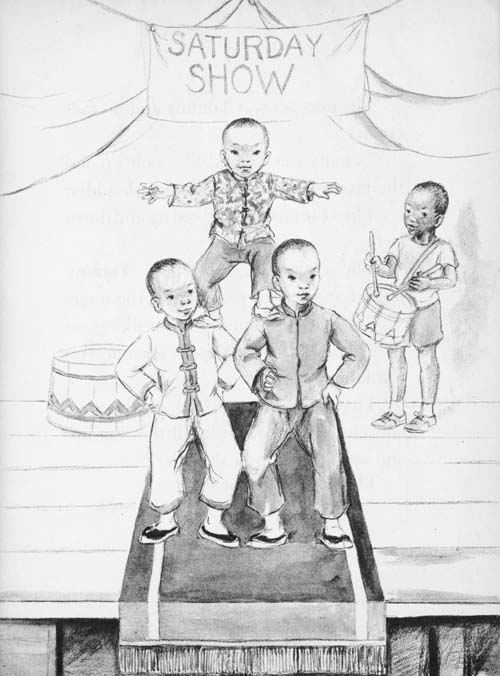 The curtain went up. Out on the stage came the Wong boys, turning hand springs.