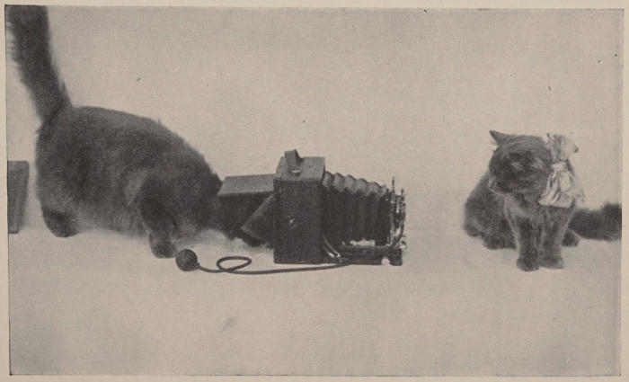 As the kittens had given up teasing and seemed rather nice again, Tompkins settled down and told them how nice and sweet-tempered his mother was and that she was so admired that people always[170] wanted to photograph her. “In fact,” he said, being just a little inclined to show off, “she got so used to the camera that she once tried to take a photograph herself and got my sister Minette to sit for her.”