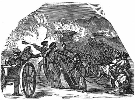 23d.—We have at this time all that is necessary for our comfort, and nothing to do but attend to our slight duties, and the care of our mules and horses. A strict guard is kept. The captured cannon is in charge of the non-commissioned officers, and our company has to practice target shooting. Being number four I have to touch off the guns. The concussion jars my head so much that I have to place a quid of tobacco in each cheek, to prevent it from injuring my teeth, which are very sore. The companies are all well disciplined, and with our 25 pieces of artillery, Col. Doniphan says he would defy 10,000 Mexicans. When not on duty, our men resort to every kind of mischief by way of amusement. Two pieces of artillery found at this place, were by them, on yesterday, dismounted and blown up. They were filled with powder and plugged, and the muzzles being buried in the earth several feet, a slow match was applied. The reports were terrific. They have also burnt all the powder. A train, nearly one-fourth of a mile in length, was made and set off, and which ignited several barrels at its termination. The poor affrighted Mexicans, meanwhile, ran off crying “no wano, no wano,” (very bad, very bad.)[68] Another species of fun, consists in collecting all the dogs that can be found during the day, and carefully shutting them in a room; at night each dog is brought out, and a large bundle of fire works fastened to his tail. He is then let loose, amid the general halloo; and being enveloped in sparks, accompanied with the noise of small fire arms, wherever he runs in the crowded streets, the Mexicans fly before him with the utmost consternation.