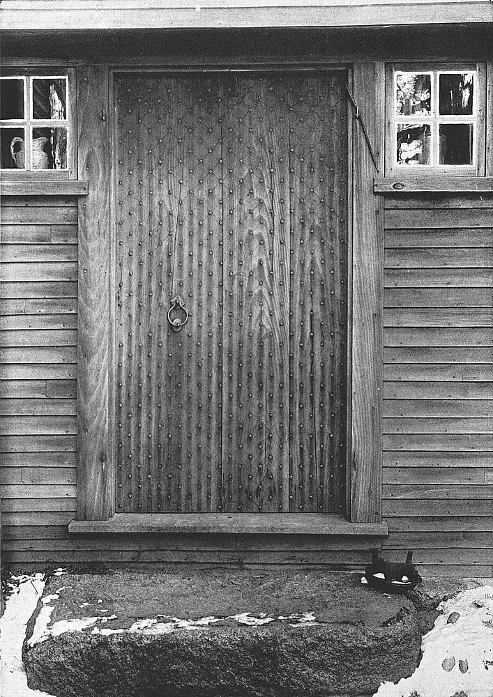 Even to-day, one finds in old New England villages front doors which are never opened; the bolt is rusted into its socket, or the key is ‘frozen’ and refuses to turn. In many instances these front doors have never had steps built up to them, but remain inaccessible, save by climbing, at three or four feet above the ground.