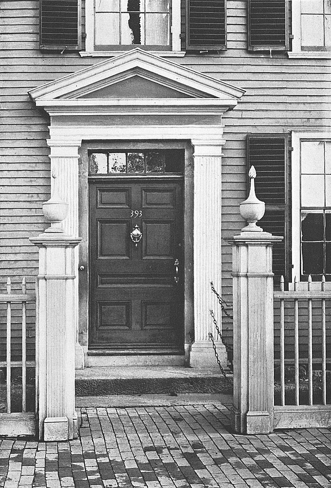 Salem Doorways! How they awaken romantic memories of a glorious past, linked as they are with the days when merchantmen and clipper ships slipped from the ways to trade in foreign lands. Days when old-fashioned gardens, gay with hollyhock and fragrant with sweet brier, were laid out at the rear of the great Colonial houses of the ship-owners. Doorways that were first designed for the Derby Street houses, later appearing on Chestnut Street, when ship-owners removed to this part of the city.