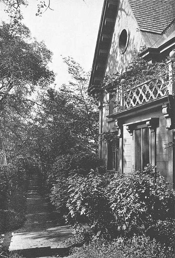 The present occupant of the house, Dr. James Simpson, has kept the beautiful old-fashioned garden intact, with the same varieties of flowers which Captain Hoffman originally planted. The central feature of the garden is an ancient summer-house, covered with a thick growth of ‘Dutchman’s Pipe,’ the vine being over eighty years old.