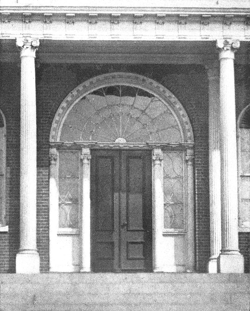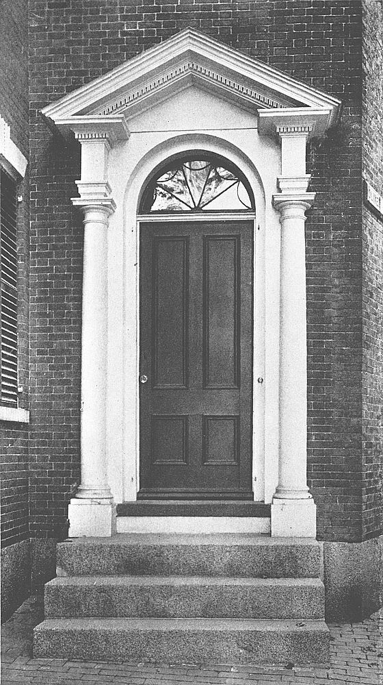 The doorway is severely plain, the sole ornamentation being in the brackets which support[Pg 75] the porch roof, and the dentils and modillions beneath the cornice.