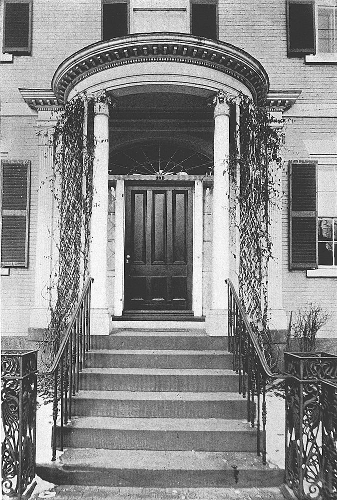 Its original owner was a Captain Doyle. Incurring serious losses through unfortunate ventures in trade, the family took in two or three ‘paying guests.’ This plan proving successful, it was enlarged by gradual additions until a second, and soon a third, house was needed to care for the growing business. Recently a fourth house—that standing next door, once the residence of Samuel McIntire, the famous craftsman and architect—has been included in the establishment, which has carried on its business continuously for ninety-seven years.