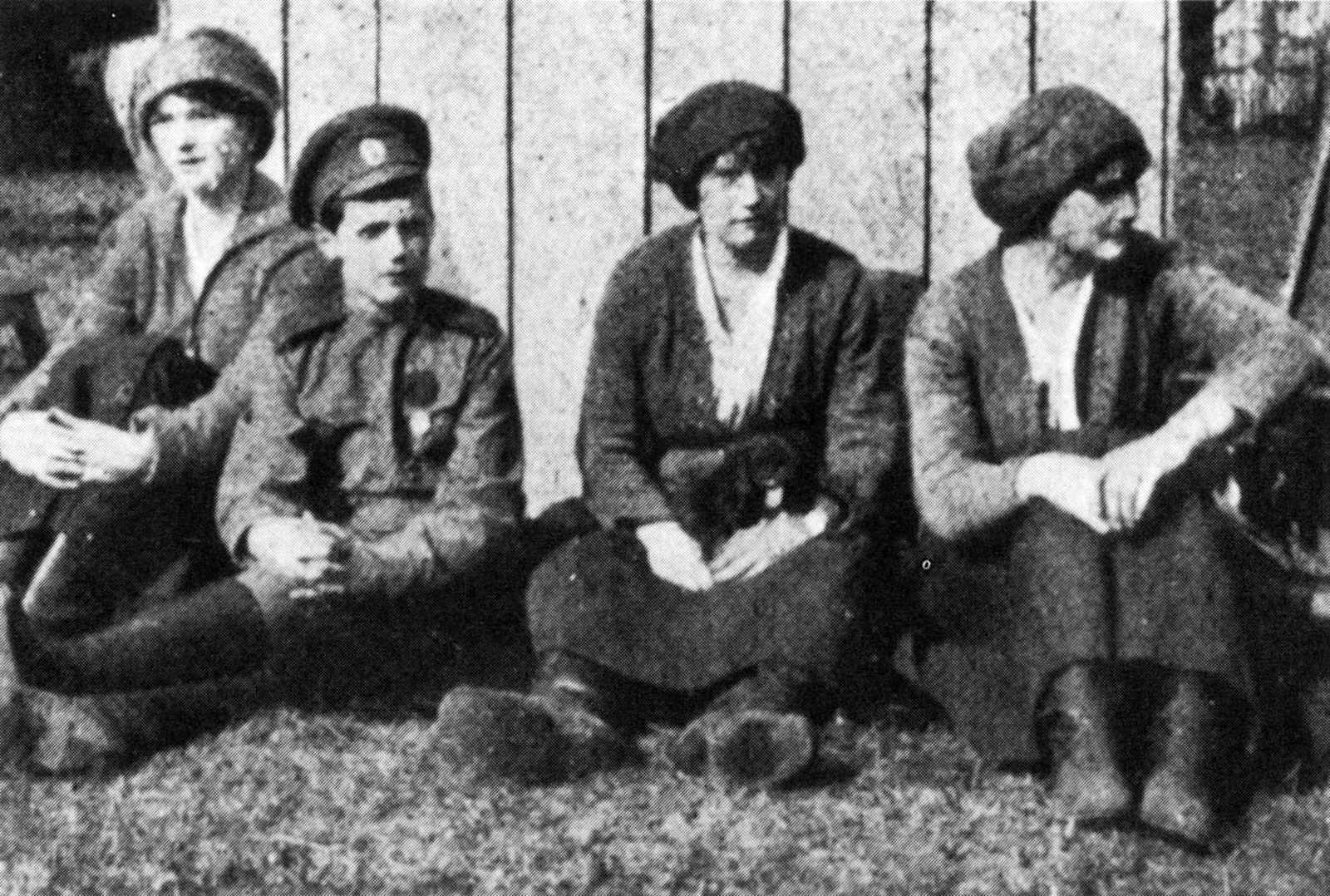 It was a thatched-roof, white-washed house in which a young woman about thirty-five years old lived with her four[Pg 372] children. The little boy, five years old, with his blond curly hair and big gray eyes reminded me very much of Alexei at that age. I was drawn to him at first sight, especially when he looked at our invalid and asked, “Is the father ill?” His own father had been wounded in the war and they hoped he would get home soon. He imagined that his father had been ill the same way.