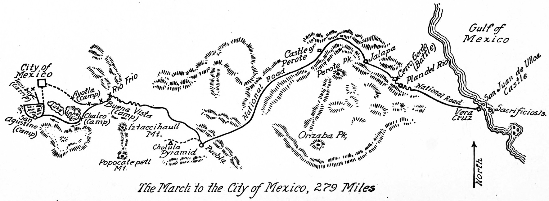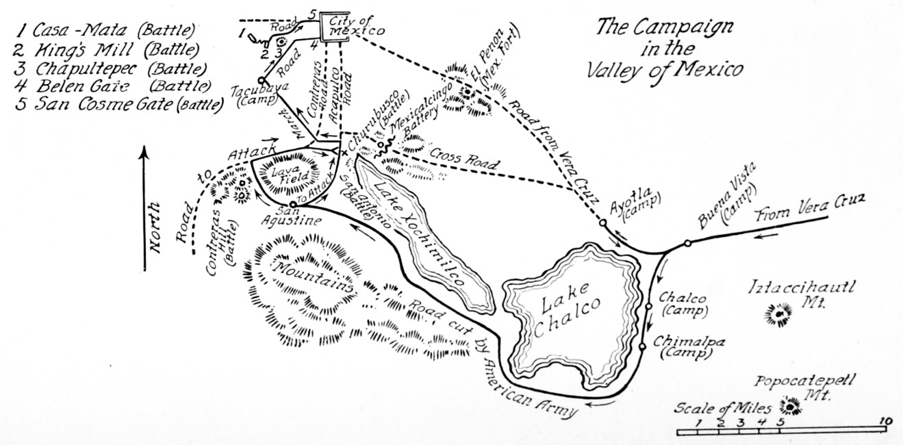 A number of leading Mexican citizens apologized[314] to General Worth and General Scott, and offered help to put down the insurrection. The trouble-makers were two thousand convicts who had been set free by Santa Anna.
