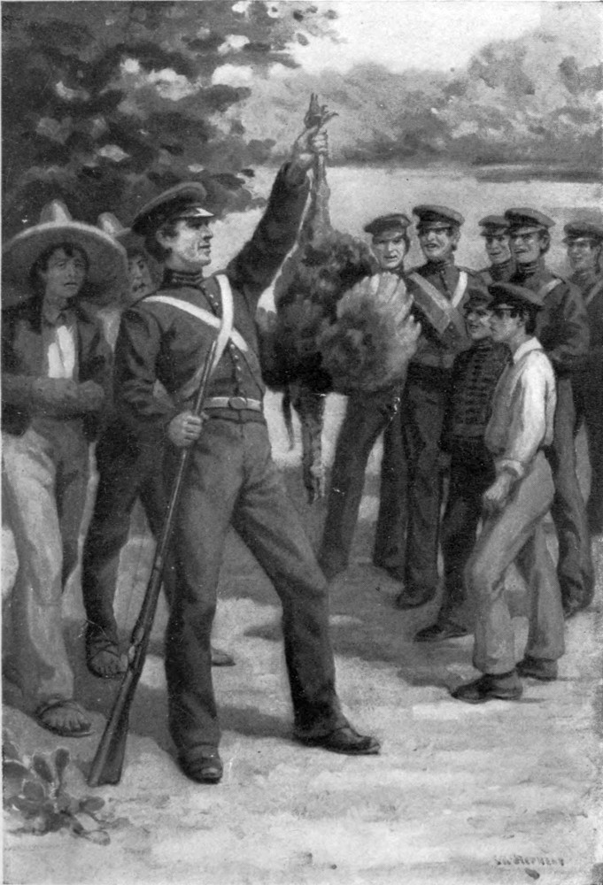 WHEN ATTACHED TO THE FOURTH UNITED STATES INFANTRY, DIVISION OF MAJOR-GENERAL WILLIAM J. WORTH, CORPS OF THE FAMOUS MAJOR-GENERAL WINFIELD SCOTT, KNOWN AS OLD FUSS AND FEATHERS, CAMPAIGN OF 1847, LAD JERRY CAMERON MARCHED AND FOUGHT BESIDE SECOND LIEUTENANT U. S. GRANT ALL THE WAY FROM VERA CRUZ TO THE CITY OF MEXICO, WHERE SIX THOUSAND AMERICAN SOLDIERS PLANTED THE STARS AND STRIPES IN THE MIDST OF ONE HUNDRED AND FIFTY THOUSAND AMAZED PEOPLE