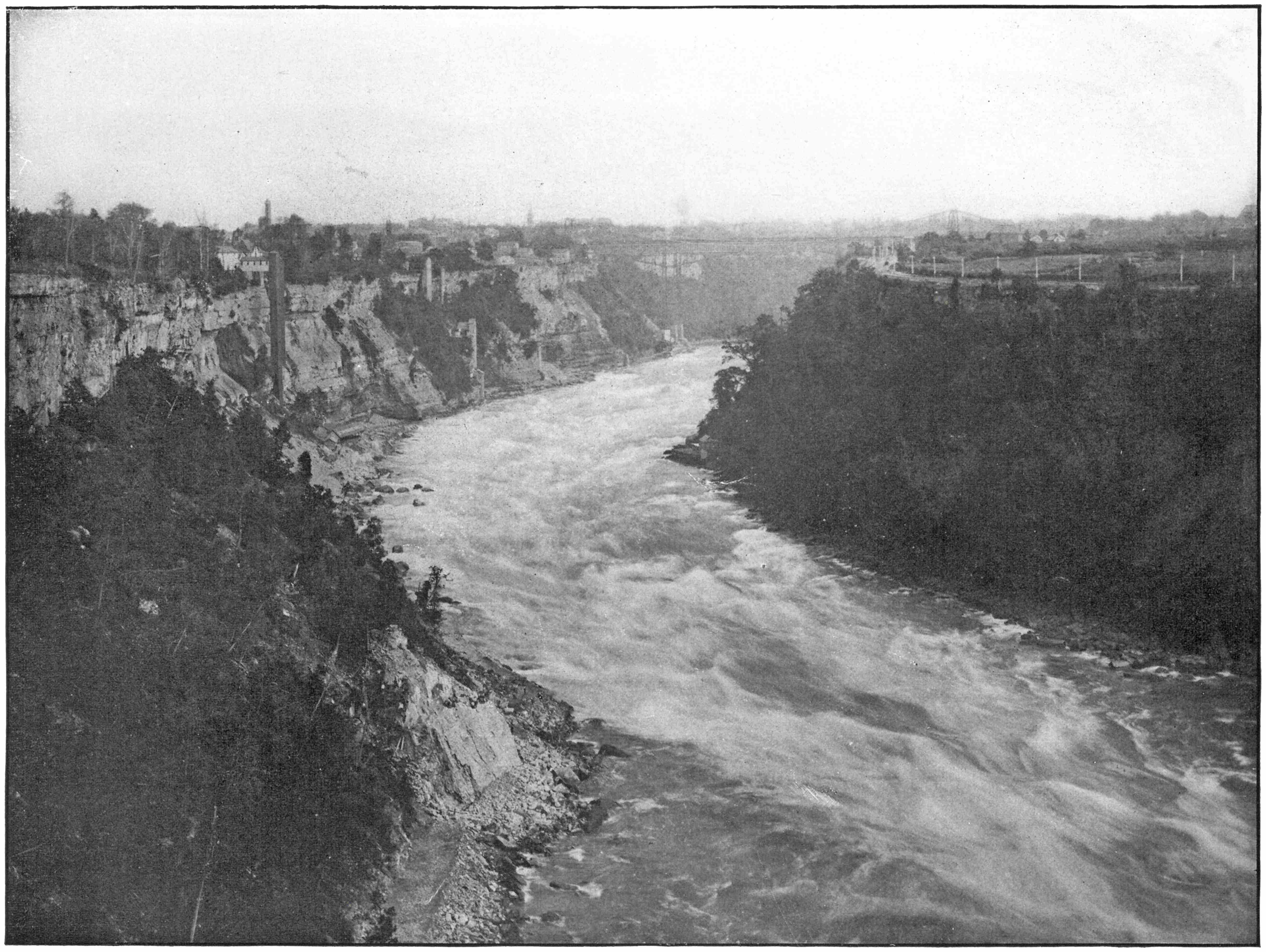 This is one of the grand views to be had from the Canadian side of the river. The rapids, by their great descent and vastness, convey an impressive effect to the mind, and, together with the Falls and scenery of Victoria Park, combines to make one of the most pleasing pictures about Niagara. The entire length of the park is traversed by the electric cars, which are so great a convenience about Niagara, for tourists.