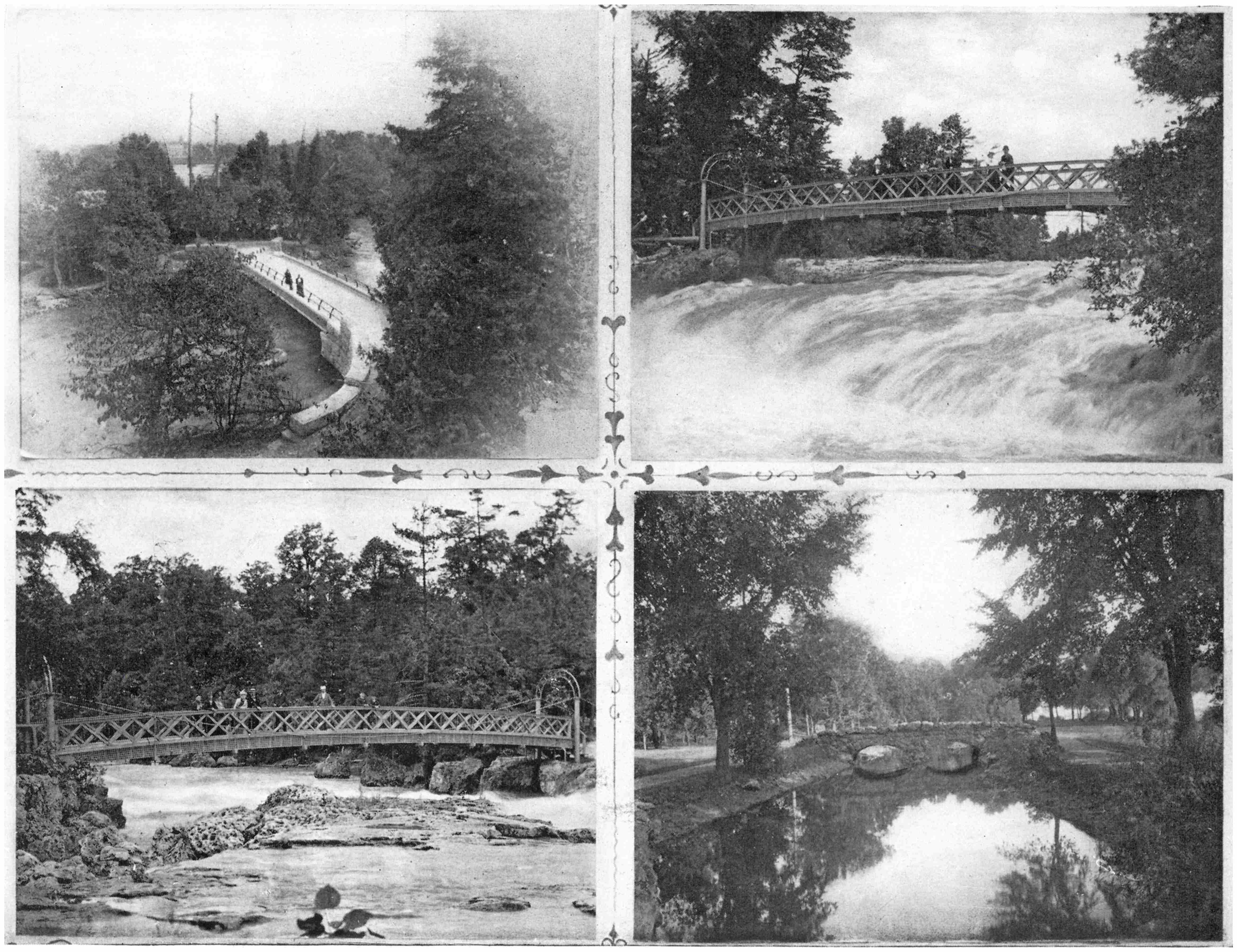 This wonderful example of man’s handiwork connects the extreme lower points of Prospect Park on the American side, with Victoria Park on the Canadian side. It has a single deck, is 1,268 feet long, 49 feet wide and 190 feet above the water, and was built in 1898. Splendid views are had from this bridge.