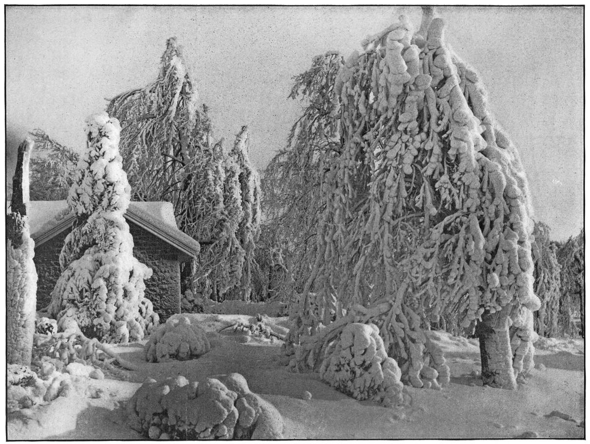 In winter the high winds which prevail, sometimes for days at a time, catch the spray from the American Fall and carry it far back into the forest growth, the trees become ice-laden, and the transformation that takes place is beautiful in the extreme.