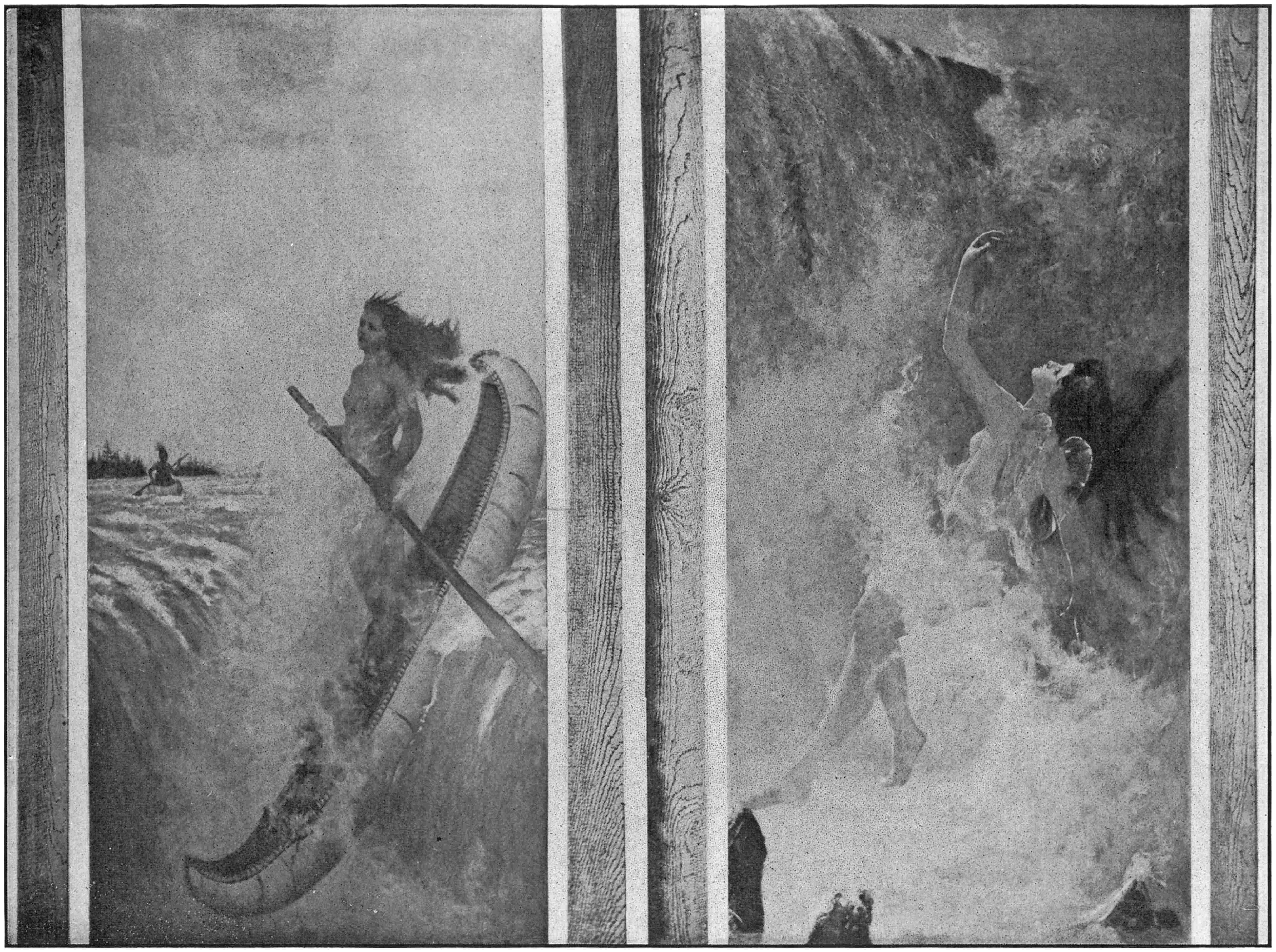 To the Indians the thundering of the water was the voice of the Great Spirit; the spray-cloud his habitation. A portion of the crops and spoils of the chase were annually offered as tokens, and the fairest maiden of a tribe was sacrificed by being sent over the falls in a canoe laden with fruits and flowers.