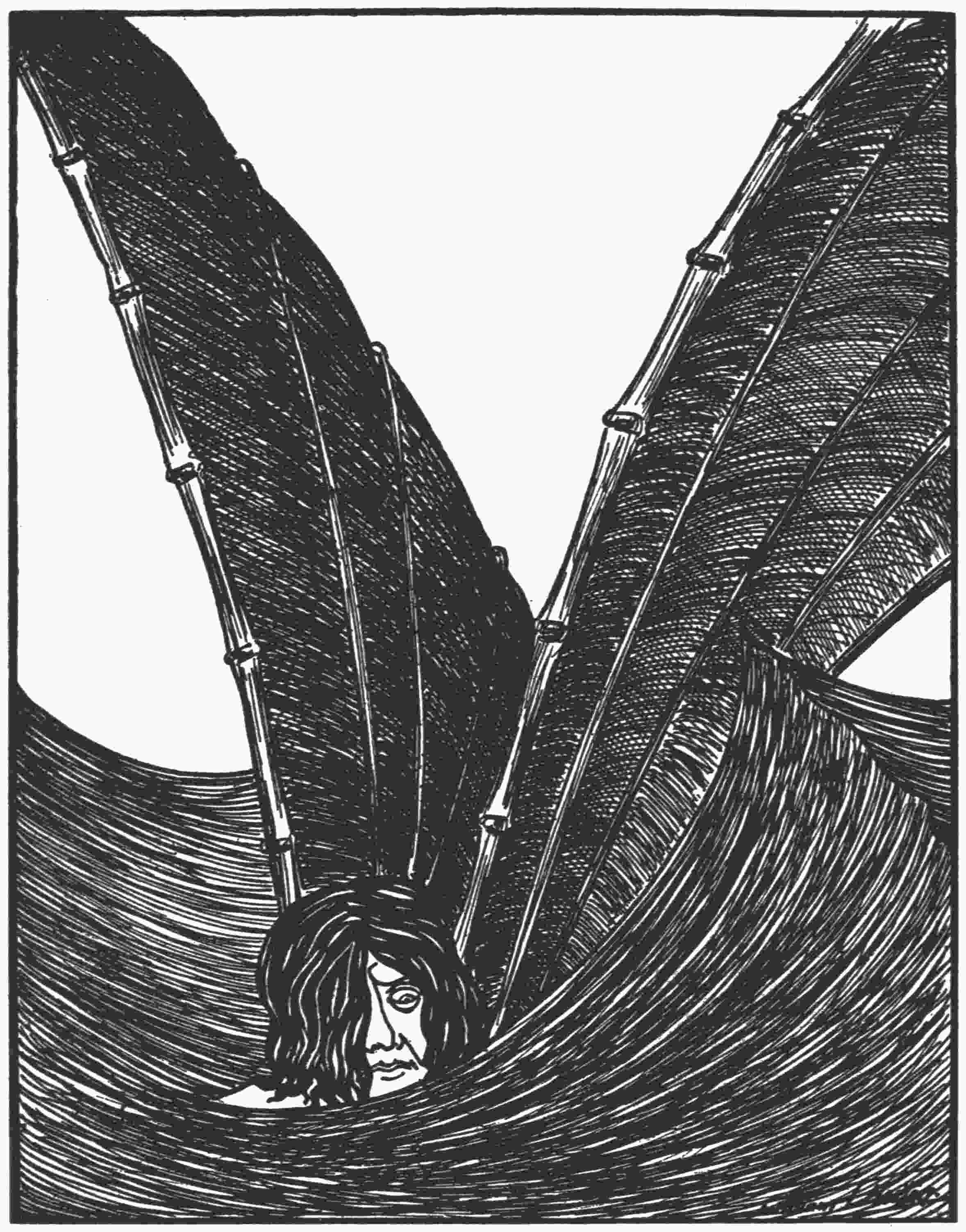 3. Mr. Horton, who is a disciple of “The Brotherhood of the New Life,” which finds the way to God in waking dreams, has his waking dreams, but more detailed and vivid than mine; and copies them in his drawings as if they were models posed for him by some unearthly master. A disciple of perhaps the most mediæval movement in modern mysticism, he has delighted in picturing the streets of mediæval German towns, and the castles of mediæval romances; and, at moments, as in All Thy waves are gone over me, the images of a kind of humorous piety like that of the mediæval miracle-plays and moralities. Always interesting when he pictures the principal symbols of his faith, the woman of Rosa Mystica and Ascending into Heaven, who is the Divine womanhood, the man-at-arms of St. George and Be Strong, who is the Divine manhood, he is at his best in picturing the Magi, who are the wisdom of the world, uplifting their thuribles before the Christ, who is the union of the Divine manhood and the Divine womanhood. The rays of the halo, the great beams of the manger, the rich ornament of the thuribles and of the cloaks, make up a pattern where the homeliness come of his pity mixes with an elaborateness come of his adoration. Even the phantastic landscapes, the entangled chimneys against15 a white sky, the dark valley with its little points of light, the cloudy and fragile towns and churches, are part of the history of a soul; for Mr. Horton tells me that he has made them spectral, to make himself feel all things but a waking dream; and whenever spiritual purpose mixes with artistic purpose, and not to its injury, it gives it a new sincerity, a new simplicity. He tried at first to copy his models in colour, and with little mastery over colour when even great mastery would not have helped him, and very literally: but soon found that you could only represent a world where nothing is still for a moment, and where colours have odours and odours musical notes, by formal and conventional images, midway between the scenery and persons of common life, and the geometrical emblems on mediæval talismans. His images are still few, though they are becoming more plentiful, and will probably be always but few; for he who is content to copy common life need never repeat an image, because his eyes show him always changing scenes, and none that cannot be copied; but there must always be a certain monotony in the work of the Symbolist, who can only make symbols out of the things that he loves. Rossetti and Botticelli have put the same face into a number of pictures; M. Maeterlinck has put a mysterious comer, and a lighthouse, and a well in a wood into several plays; and Mr. Horton has repeated again and again the woman of Rosa Mystica, and the man-at-arms of Be Strong; and has put the crooked way of The16 Path to the Moon, “the straight and narrow way” into St. George, and an old drawing in The Savoy; the abyss of The Gap, the abyss which is always under all things, into drawings that are not in this book; and the wave of The Wave, which is God’s overshadowing love, into All Thy waves are gone over me.