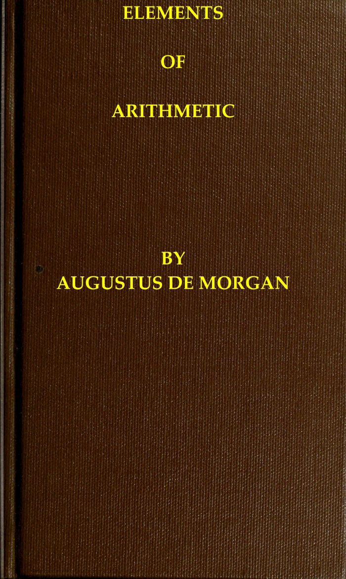 The preceding editions of this work were published in 1830, 1832, 1835, and 1840. This fifth edition differs from the three preceding, as to the body of the work, in nothing which need prevent the four, or any two of them, from being used together in a class. But it is considerably augmented by the addition of eleven new Appendixes,[1] relating to matters on which it is most desirable that the advanced student should possess information. The first Appendix, on Computation, and the sixth, on Decimal Money, should be read and practised by every student with as much attention as any part of the work. The mastery of the rules for instantaneous conversion of the usual fractions of a pound sterling into decimal fractions, gives the possessor the greater part of the advantage which he would derive from the introduction of a decimal coinage.