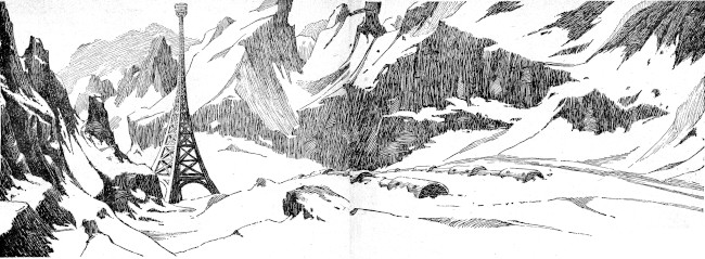 There seemed to be no one about at all, only the white coldness of the mountains. But there was a movement at the mine-drift, and something came out of it. Four men appeared, muffled up like Massy himself. They rolled the eighteen-foot grid out of the mine-mouth, moving it on those inflated bags which are so much better than rollers for rough terrain. They looked absurdly like bears with steaming noses, in their masks and clothing. They had some sort of powered pusher with them, and they got the metal cage to the very top of a singularly rounded stone upcrop which rose in the center of the valley.