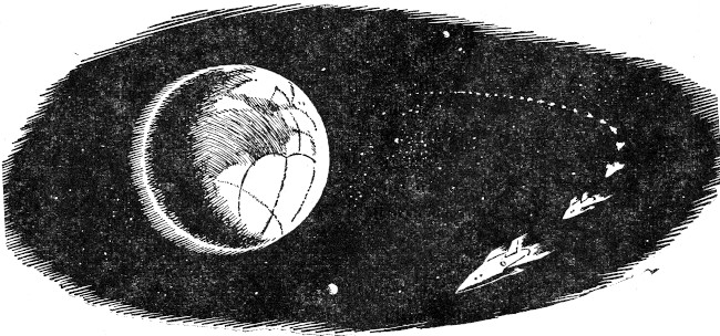 The planet turned on its axis, to be sure. But around it, quite close by, there hung gigantic streamers of shining gas. At their beginning, those streamers bore a certain resemblance to the furry wild-animal tails that little boys like to have hanging down from hunting-caps. Only they shone. And as they developed they merged, so that there was an enormous shining curtain about Lani III. There were draperies of metal-mist to capture sunlight that should have been wasted, and to diffuse very much of it to Lani II. At midnight there was only one spot in all the night-sky where there was really darkness. That was directly overhead—directly outward from the planet from the sun. Gigantic shining streamers formed a wall, a tube, of comet-tail material, yet many times more dense and therefore brighter—which shielded the colony-world against the dark and cold, and threw upon it a brilliant, warming brightness.