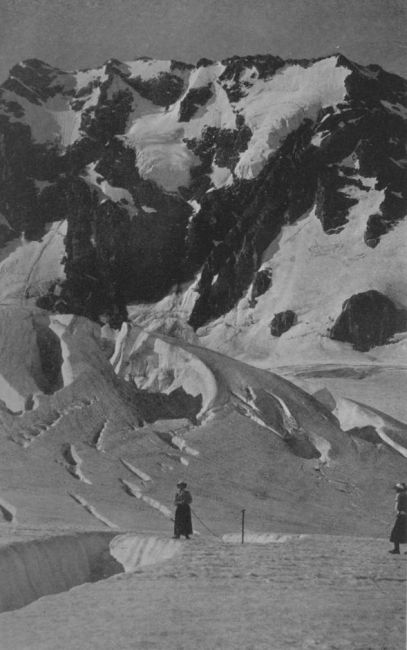 | We decide to make a New Pass—Bivouac at Malte Brun—A Start by Moonlight—Early Morning on the Glacier—Dawn on the Pass—Rotten Rock and Broken Ice—Some Difficult Climbing—An Ice Fall and an Avalanche Shoot—We reach the Whymper Glacier—A Cannonade from the Dome—We explore New Country—West Coast Vegetation |