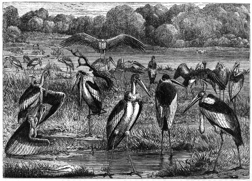 THE ADJUTANTS, ARGALAS, OR MARABOUS (Leptoptilos) The African Marabou—The Indian Adjutant, or Argala 74, 75
