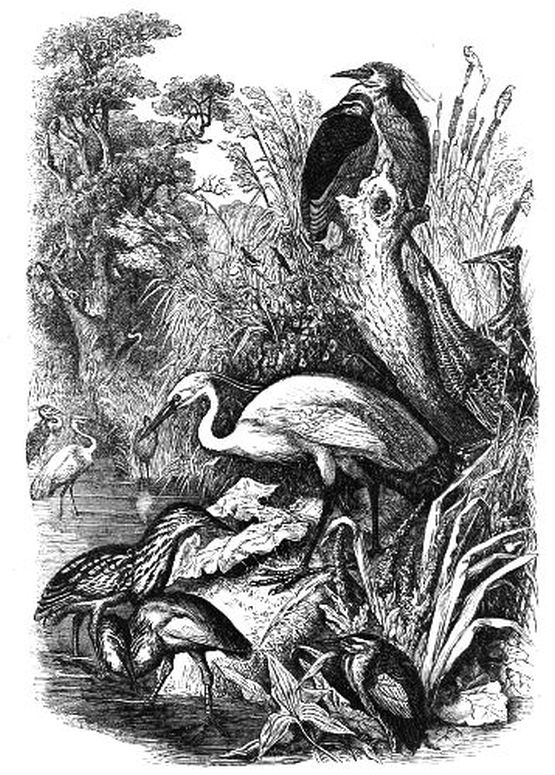 THE MARSH-WADERS (Paludicolæ). The CRANES (Grues):—The Common Crane—The Demoiselle, or Numidian Crane. The AFRICAN CROWNED CRANES (Balearica):—The Crowned African or Peacock Crane. The FIELD STORKS (Arvicolæ). The SNAKE CRANES (Dicholophus):—The Brazilian Cariama, or Crested Screamer 87-94