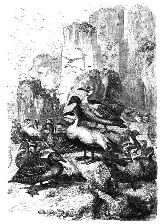 THE DUCKS (Anates):—The Ruddy Sheldrake, or Brahminy Duck. The SHELDRAKES (Vulpanser):—The Common Sheldrake. The TREE DUCKS (Dendrocygna):—The Widow Duck—The Wild Duck—The Wood or Summer Duck—The Chinese Teal, or Mandarin Duck—The Shoveler Duck—The Musk Duck. The DIVING DUCKS (Fuligulæ). The EIDER DUCKS (Somateria):—The True Eider Duck, or St. Cuthbert's Duck—The King Eider. The WESTERN or STELLER'S EIDER DUCK (Somateria or Heniconetta Stellerii). The SCOTERS (Oidemia):—The Velvet Scoter. The FEN DUCKS (Aythya):—The Red-headed Duck, Dunbird, or Pochard. The PIN-TAILED DUCKS (Erismatura):—The White-headed Pin-tailed Duck 143-170