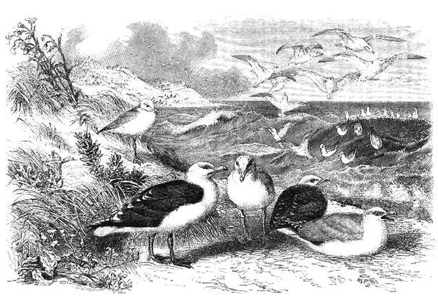 THE GULLS (Lari):—The Fishing Gulls—The Great Black-backed Gulls—The Lesser Black-backed or Yellow-legged Gull—The Herring Gull—The Large or Glaucous White-winged Gull—The Lesser White-winged Gull. The ICE GULLS (Pagophila):—The Ivory Gull 186-194