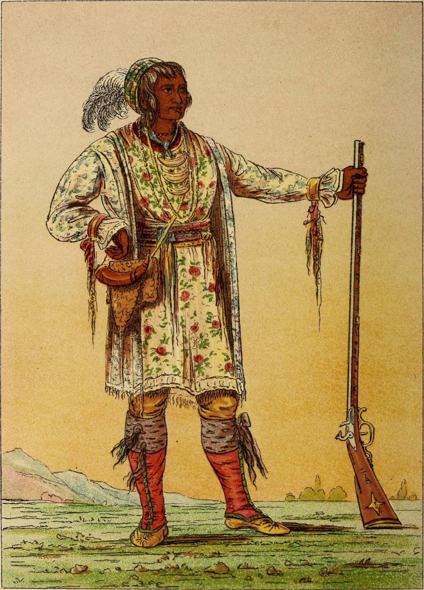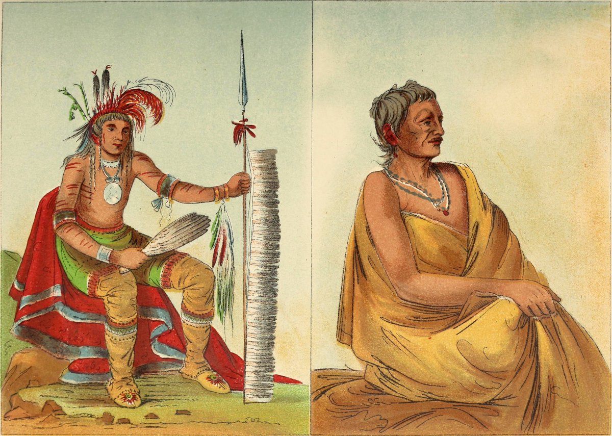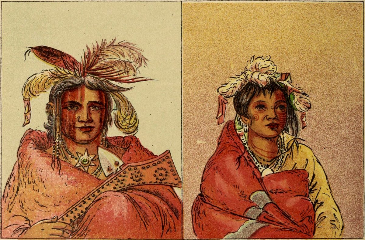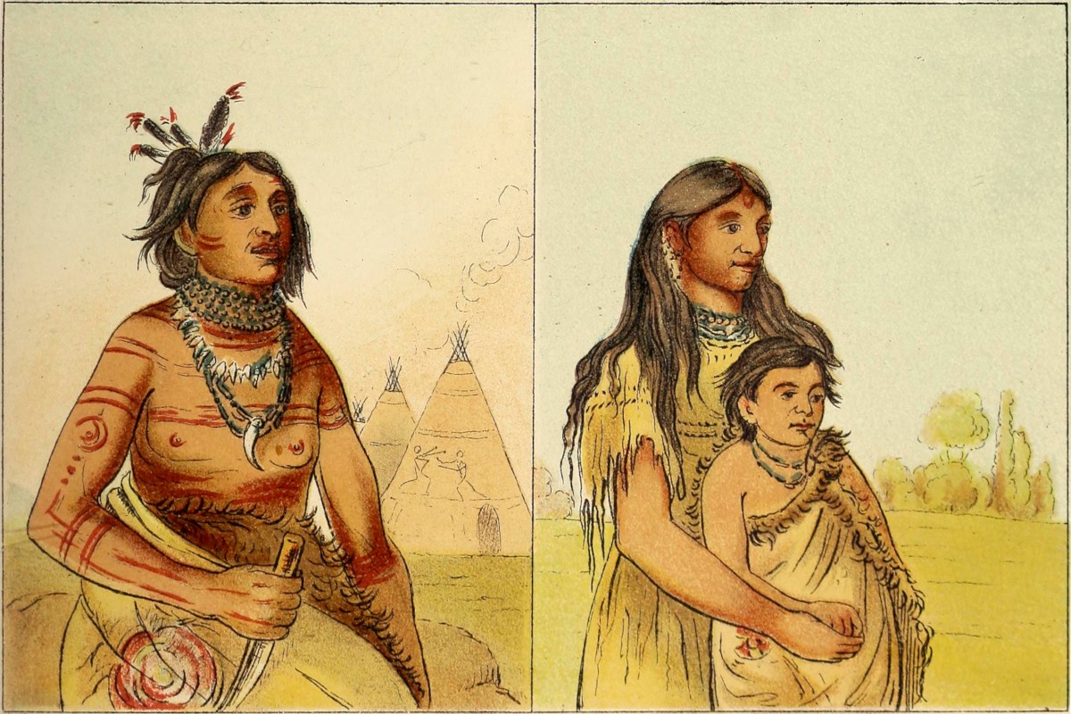 Since writing the last epistle, some considerable time has elapsed, which has, nevertheless, been filled up and used to advantage, as I have been moving about and using my brush amongst different tribes in this vicinity. The Indians that may be said to belong to this vicinity, and who constantly visit this post, are the Ioways—Konzas—Pawnees—Omahas—Ottoes, and Missouries (primitive), and Delawares—Kickapoos—Potawatomies—Weahs—Peorias—Shawanos, Kaskaskias (semi-civilized remnants of tribes that have been removed to this neighbourhood by the Government, within the few years past). These latter-named tribes are, to a considerable degree, agriculturalists; getting their living principally by ploughing, and raising corn, and cattle and horses. They have been left on the frontier, surrounded by civilized neighbours, where they have at length been induced to sell out their lands, or exchange them for a much larger tract of wild lands in these regions, which the Government has purchased from the wilder tribes.