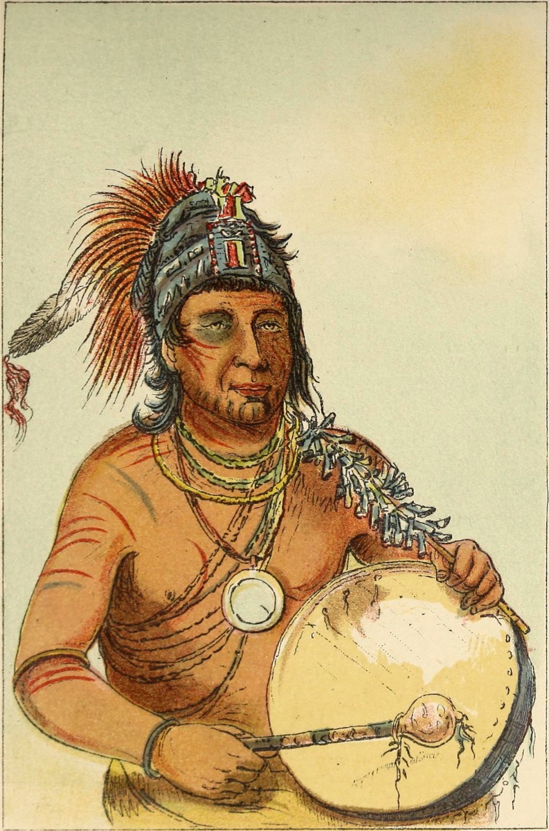There have been some very surprising tales told of this man, which will render him famous in history, whether they be truth or matters of fiction. Of the many, one of the most current is, that he gained his celebrity and authority by the most diabolical series of murders in his own tribe; by administering arsenic (with which he had been supplied by the Fur Traders) to such of his enemies as he wished to get rid of—and even to others in his tribe whom he was willing to sacrifice, merely to establish his superhuman powers, and the most servile dread of the tribe, from the certainty with which his victims fell around him, precisely at the times he saw fit to predict their death! It has been said that he administered this potent drug, and to them unknown medicine, to many of his friends as well as to foes; and by such an inhuman and unparalleled depravity, succeeded in exercising the most despotic and absolute authority in his tribe, until the time of his death!